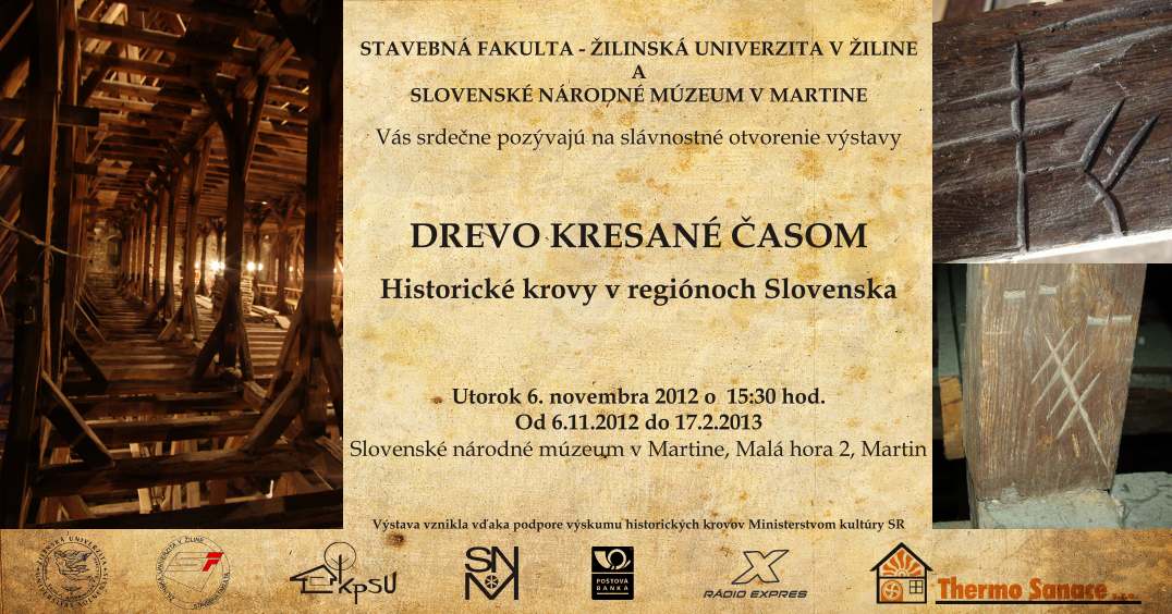 Výstava vznikla vďaka podpore výskumu historických krovov Ministerstva kultúry Slovenskej republiky (grantová schéma „Obnovme si svoj dom“), ktorý od roku 2008 realizuje výskumný tím špecialistov z Katedry pozemného staviteľstva a urbanizmu Stavebnej fakulty Žilinskej univerzity v Žiline a špičkových odborníkov z pamiatkovej praxe.