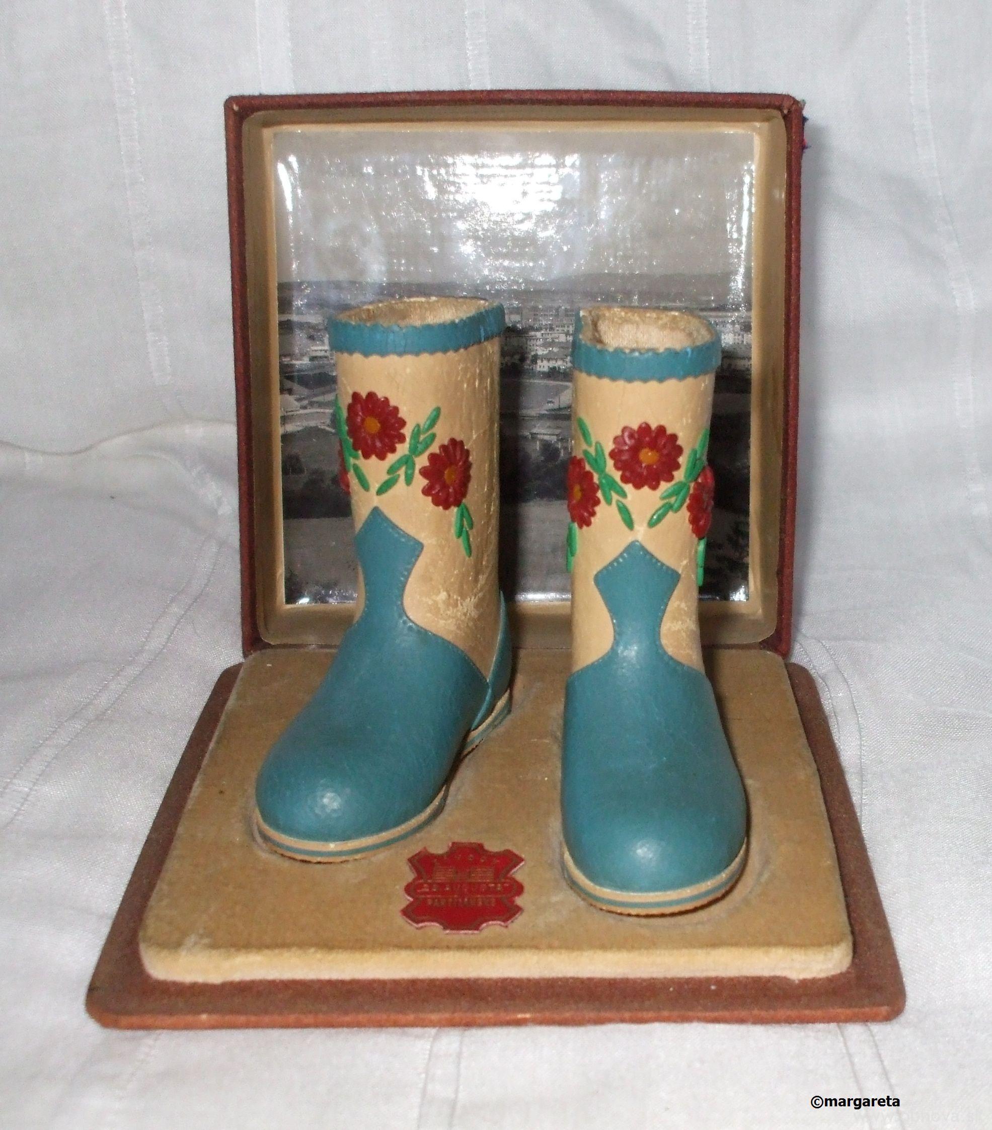 Na základe vlastných výskumov je potvrdený fakt, že sa v rámci špecializovanej gumotextilnej produkcie vyrábali miniatúrne gumené čižmičky ako reklamné predmety firmy Baťa ešte v Baťovanoch. Je veľmi pravdepodobné , že n.p. ZDA Partizánske len vymenilo logo na etui s čižmičkami z f-y Baťa na svoje. Reklamný predmet bol každopádne vyrobený v štaridsiatych rokoch 20. storočia. Etui je štvorcového tvaru, z tvrdeného kartónu a potiahnuté tenkou textíliou s vlasovým povrchom. Na pozadí otvoreného etui je fotografia Baťovian. Kazeta i čižmičky sú zdobené štylizovaným dekórom. Baťa obľuboval uplatňovanie ľudových motívov na niektorých svojich výrobkoch, napríklad na hračkách. O nich niečo malé nabudúce.