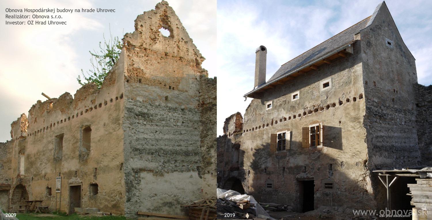 Tým Obnova s.r.o. realizoval na tomto objekte citlivú rekonštrukciu spolu so správcom O.z. Hrad Uhrovec a ateliérom ô. Obnova hospodárskej budovy, vrátane rekonštrukcie jej prestrešenia prebiehala v rokoch 2019-2020. Počas obnovy 3 – poschodového hospodárskeho objektu sa primárne uplatnila konzervačná metóda, použili sa tradičné stavené technológie pri tesárskych, murárskych prácach a realizácii architektonických detailov.