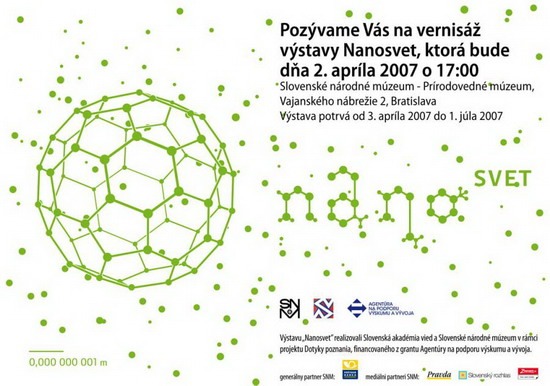 Slovenské národné múzeum v spolupráci so Slovenskou akadémiou vied a ob?ianskym združením RIO 21 pripravili výstavu Nanosvet, ktorá ponúkne verejnosti a najmä mládeži poh?ad na svet ve?mi malých rozmerov. Nanosvet je prvou z troch výstav projektu Dotyky poznania, ktorý grantom podporila Agentúra pre podporu výskumu a vývoja SR. Verejnos? bude ma? možnos? objavi? nanosvet od utorka 3. apríla 2007 v Slovenskom národnom múzeu na Vajanského nábr. v Bratislave.