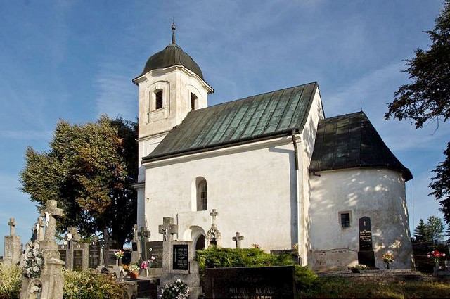 Kostol postavený z tehál – plevoviek pochádza z roku 1172, v roku 1741 bol barokovo prestavaný a nadobudol dnešnú podobu. Zaujímavosťou je, že zvonku nič nenaznačuje jeho kruhový základ, preto časť odbornej verejnosti spochybňuje zaradenie stavby medzi rotundy. Pri renovácii v roku 1932 objavili unikátne fresky na južnej stene apsidy a lode. Pod kostolom je krypta, kde sú pochovaní členovia zemianskej rodiny Jackovičovcov.