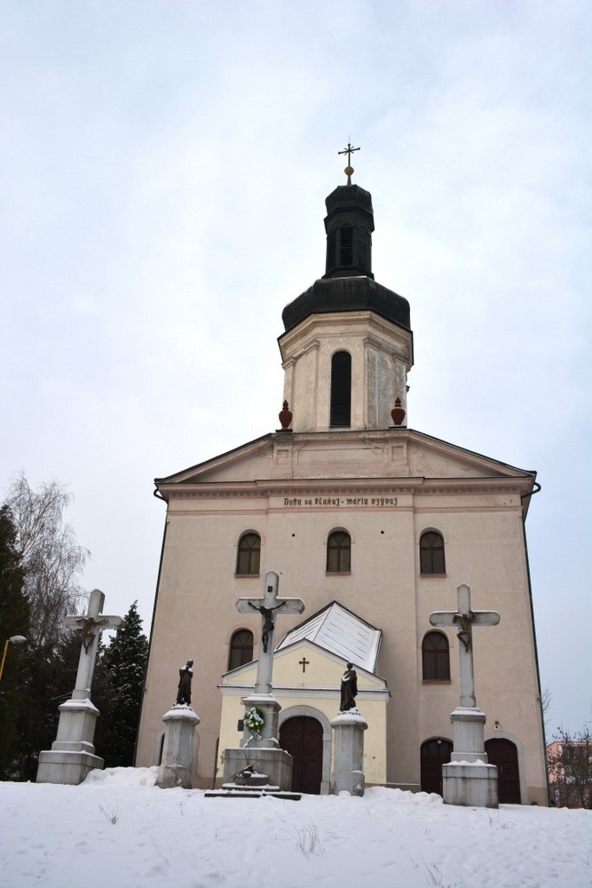 Cestu ku kostolu lemuje po oboch stranách šestnásť kaplniek Krížovej cesty. Vznikli koncom 18. a začiatkom 19.storočia. Od druhej polovice 19.storočia kaplnky krížovej cesty slúžili bohatým ako krypty.