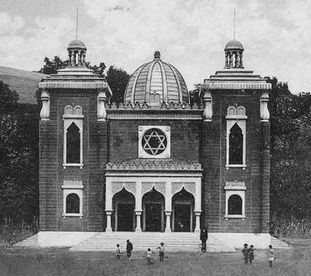 Synagóga stála na rovine vytesanej do úbočia vrchu Okulky. Mala obdĺžnikový pôdorys s rozmermi 22 x 19 metrov. Viedlo k nej široké monumentálne schodisko, plateau bolo na oboch stranách ozdobené jemnou balustrádou. Do predsiene synagógy sa dalo vstúpiť tromi vchodmi. Na oboch stranách predsiene sa nachádzali dve schodiská, ktoré viedli na balkón pre ženy. Každý ich roh skrášľovali ozdobné piliere ukončené lotosmi. Stupňovité schodiská boli zakončené šesťhrannými laternami s pologuľou na vrchole. Silným dojmom na návštevníka pôsobili zárubne okien a dverí, ako i stĺpy, piliere a oblúky zhotovené zo svetlého kameňa a umiestnené na tmavom vakovaní. Priestorovo čistý a bohato presvetlený interiér vrcholil v konštrukčne pôsobivej sklenenej kupole, nesenej štyrmi zväzkovitými stĺpmi, ktoré súčasne podopierali široké empory vedúce pozdĺž bočných stien. Takto členený priestor pôsobil ako trojlodie so strednou loďou ukončenou veľkým kruhovým oknom s hexagramom, rovnakým, aké vytváralo centrálny motív na čelnej fasáde. Vo východnej strane synagógy bola umiestnená archa zmluvy. Vo vnútri sa ďalej nachádzalo pódium na čítanie z Písma (almena), sobášny baldachýn (chupa), miesto predčitateľa modlitieb (bína), ktoré tiež smerovalo k východu.