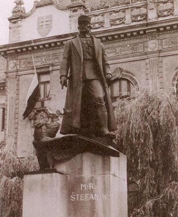 Foto k článku: Socha Milana Rastislava Štefánika pred budovou súdu okolo roku 1940