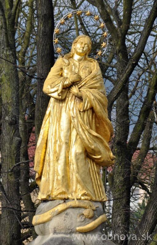 Ružomberská radnica opraví sochu Panny Márie Nepoškvrnenej, ktorá stojí pred budovou mestského úradu na trojbokom pilieri – mariánskom stĺpe z roku 1858.