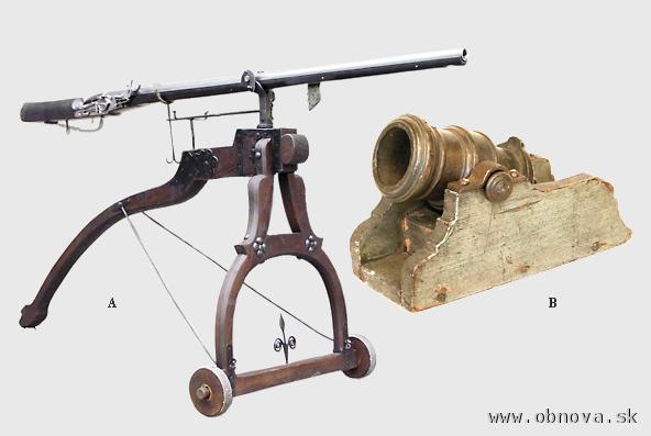 A dvojhák, Nemecko, cca 1620; B mažiar, Rakúsko, cca 1780