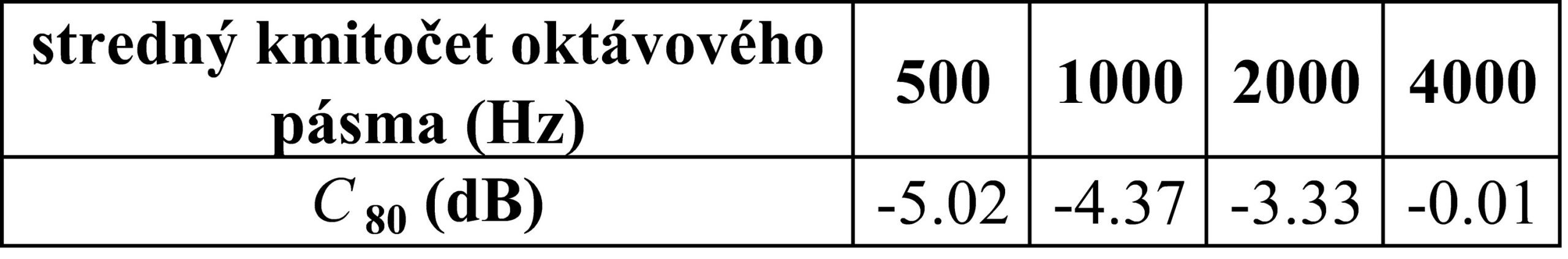 Tabuľka 5 Číselné vyjadrenie miery jasnosti pre hudbu C80 (dB) v oktávových pásmach