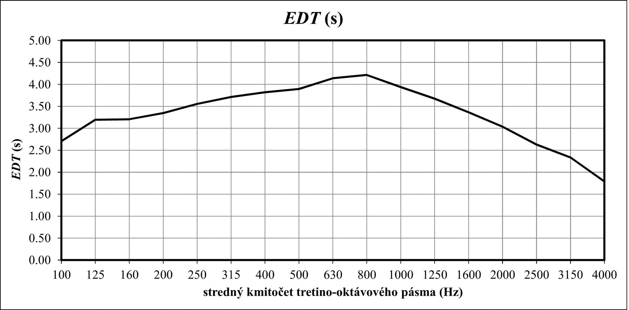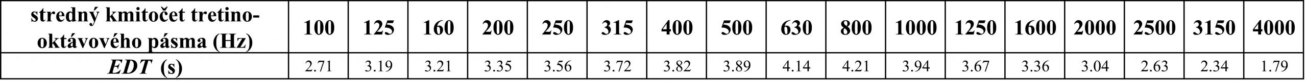 Tabuľka 3 Číselné vyjadrenie času dozvuku EDT (s) v tretino-oktávovom frekvenčnom pásme