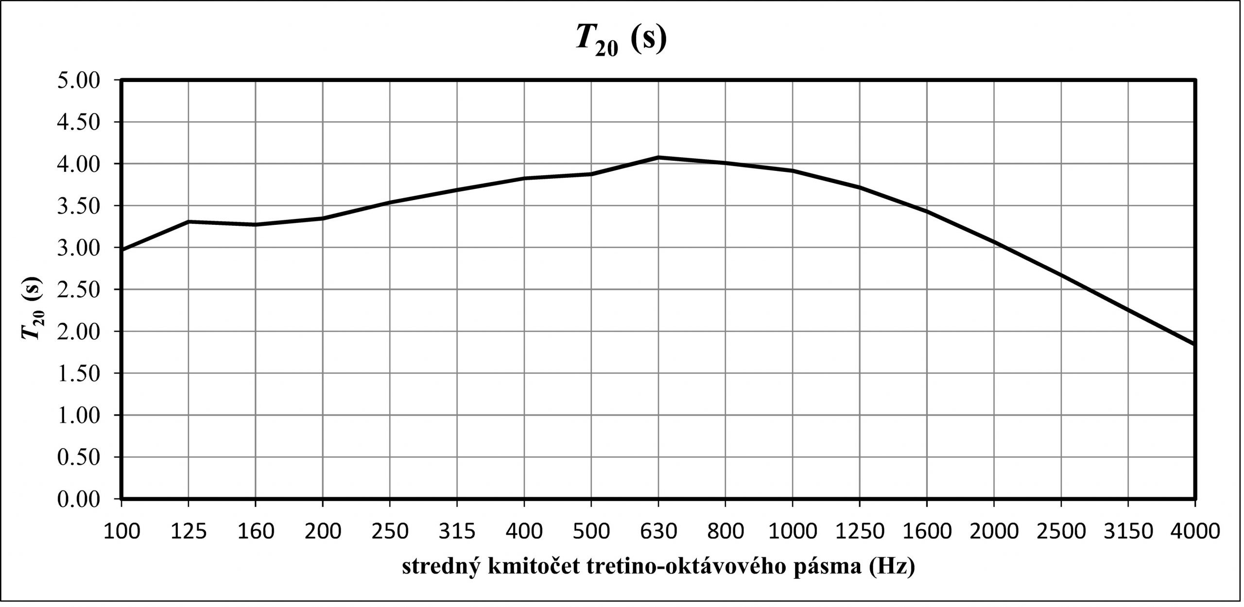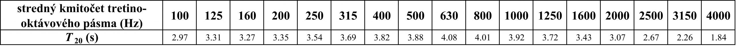 Tabuľka 2 Číselné vyjadrenie času dozvuku T20 (s) v tretino-oktávovom frekvenčnom pásme