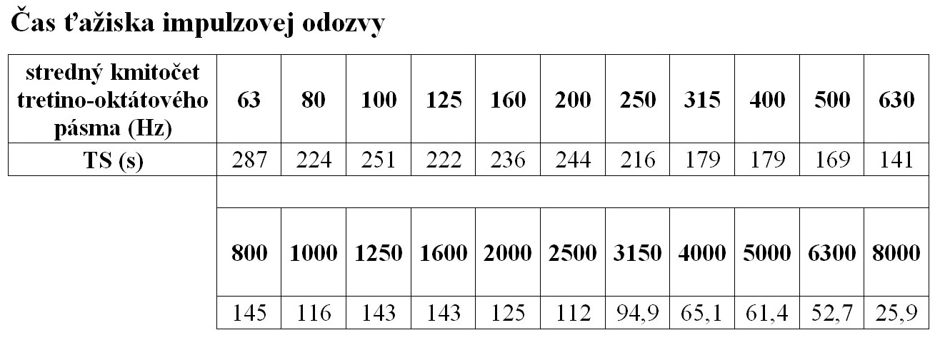 - čas ťažiska impulzovej odozvy v milisekundách (TS)