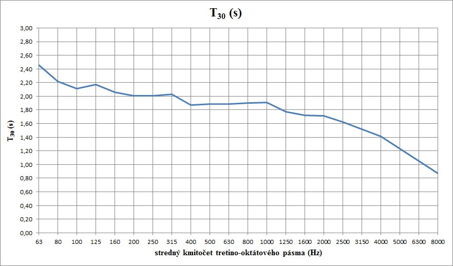 - čas dozvuku založený na hodnotiacom pásme 30 dB (T30)