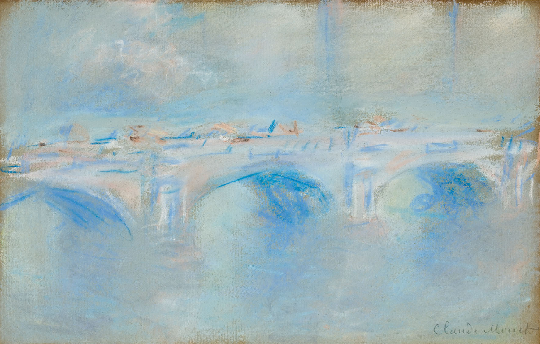 Akvarely a pastely sú v porovnaní s olejomaľbami menej známe techniky maľby, avšak medzi impresionistami a postimpresionistami získavali postupne na umeleckej hodnote. Akvarely a pastely sa v dannom období stali predchodcami nového štýlu a predlohami olejomalieb ako napríklad Monetovho Waterloo mostu. Originál na výstave v Albertine je prezentovaný vedľa skice známeho Monetovho obrazu.