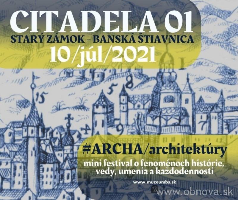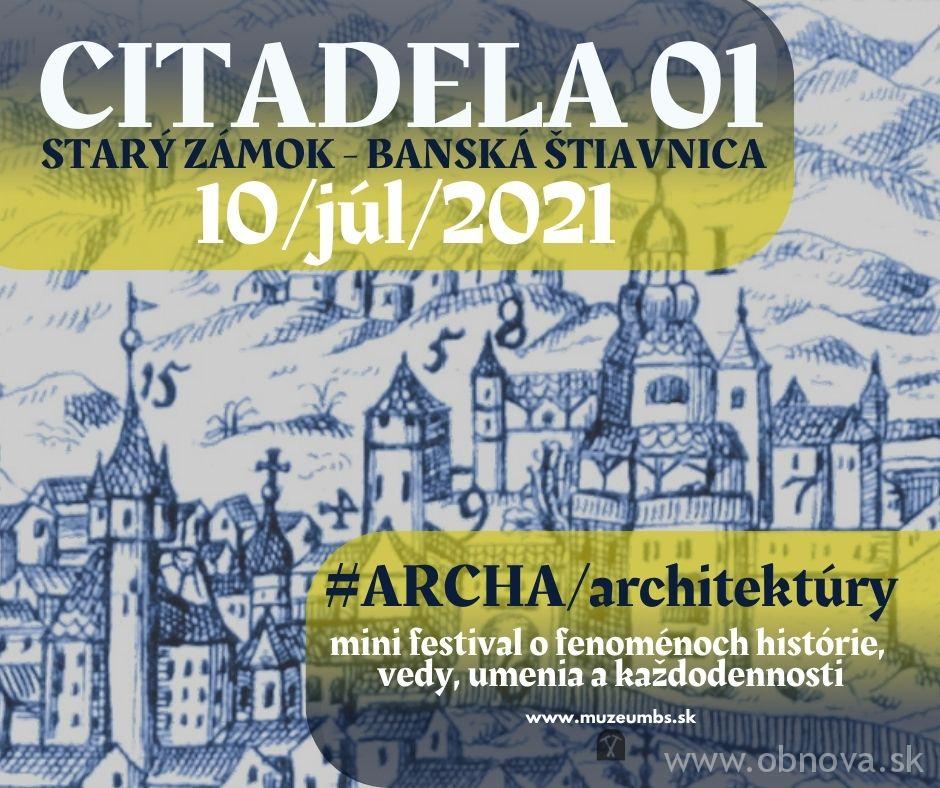 Slovenské banské múzeum Banská Štiavnica v spolupráci s o.z. Iniciatíva za živé mesto uvádzajú a pozývajú na podujatie CITADELA 01 — #ARCHA/architektúry. Projekt CITADELA je cyklus sobotných podujatí – mini festivalov o fenoménoch histórie, vedy, umenia a každodennosti uvádzaný v kulisách Starého zámku. Počas tematických eventov sa budú medziodborovo neformálne prezentovať a prepájať odborníci, vedci, bádatelia, múzejníci, archivári a umelci. Ambíciou podujatia je verejnosti neformálne predstaviť rozmanité kultúrno – historické škály bádania, múzejníctva, aktuality, ale aj multižánrové umelecké reakcie na špecifický genius loci Starého zámku.