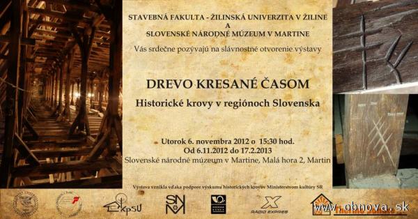 Výstava Drevo kresané časom predstavuje návštevníkom unikátne krovy, ktoré potvrdzujú, že úroveň staviteľstva na Slovensku sa môže porovnávať s omnoho vyspelejšími európskymi krajinami. Stavebná fakulta Žilinskej univerzity v Žiline a Slovenské národné múzeum v Martine dokumentujú vývoj historických krovov v severovýchodných regiónoch Slovenska a v najväčšom a najvýznamnejšom chráme Bratislavy – Dóme svätého Martina.
