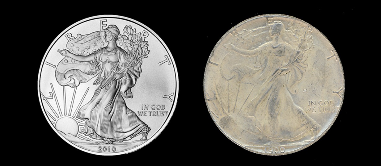 U týchto imitácií strieborných mincí nesedia rozmery ani hmotnosť, no tým najdôležitejším znakom je, že sú magnetické. Pri podrobnejšom skúmaní, najlepšie s lupou v ruke, si okamžite všimnete krásny krupicový „dizajn“ povrchu, nejasné kontúry a detaily, ktoré skôr cítite, ako vidíte. Na prvý pohľad je zrejmé, že tieto imitácie raznice ani nevideli. Na niektorých dokonca možno objaviť začínajúcu koróziu.