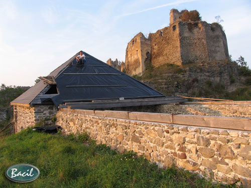 Približne 19.8., v noci, sa strhla silná búrka s vetrom, ktorý v celej doline vyvrátil stromy a ukrojil zo strechy na hrade. Tlak vetra vydriapal nárožné korýtka na severozápadnom nároží tak, že sme ich zbierali po celom nádvorí. Niektoré, žiaľ, toto besnenie neprežili.