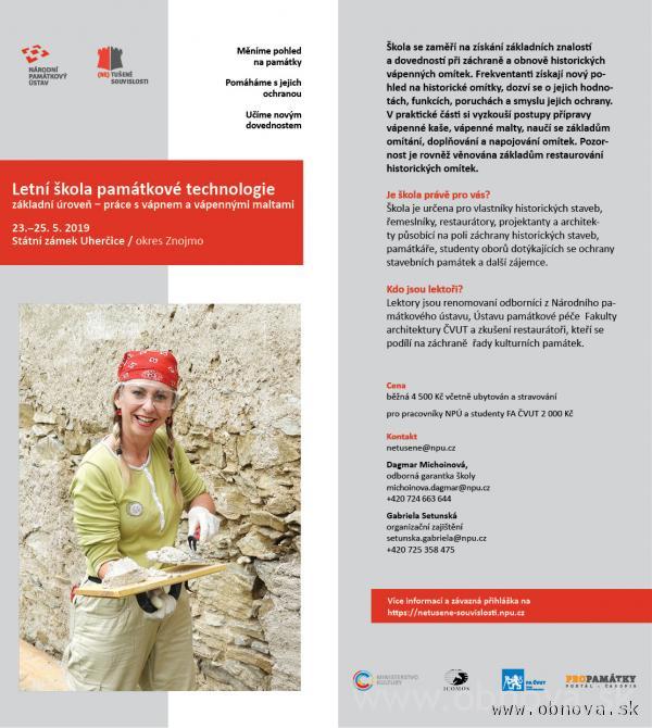 Škola je pořádána v úrovni pro začátečníky, kteří se chtějí více dozvědět o vápně a vápenných maltách a historických omítkách a chtějí si vyzkoušet jak se omítá i restauruje. Škola se koná se na jihu Moravy v areálu zámku Uherčice, a to od 23. do 25. května 2019