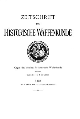 Titulná strana časopisu „Zeischrift für Historische Waffenkunde“, 1897.