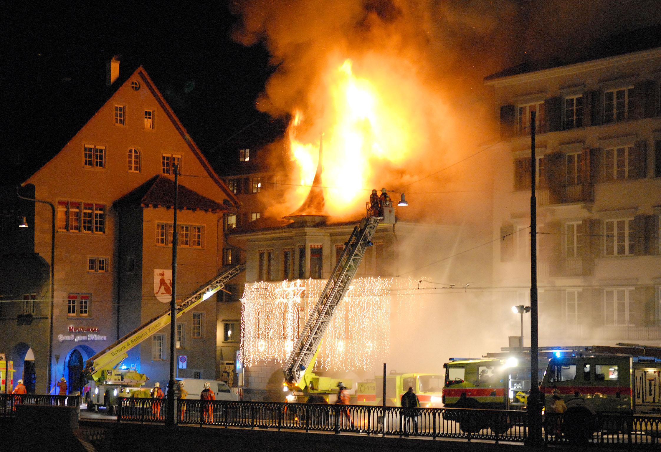 – 15. 11. 2007, Zürich – zhorel dom cechu stolárov, zahynul jeden hasič a sedem ďalších bolo zranených,