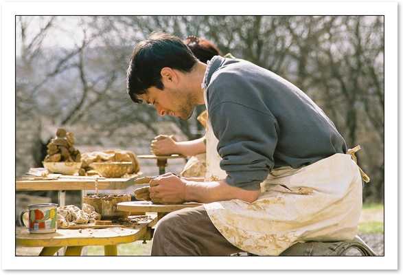 > tanečnice, živá hudba,výstava kvalitní čajové keramiky, pálení raku a
