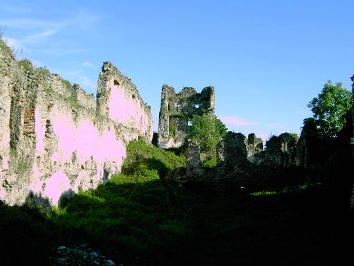je porušená masívnym rozpadom okenných otvorov. Priľahlé východné krídlo obsahovalo prejazd so vstupom do predhradia. Interiér budovy je dnes zavalený suťou z rozpadnutých obvodových múrov, nad terénom sa zachovala len vonkajšia obvodová stena s čiastočne zasypaným vstupným portálom a ďalším podlažím s rozpadnutými okennými otvormi. Vstup do predhradia sa nachádzal na východnej strane a bol chránený mohutnou obytnou budovou, priloženou z vonkajšej strany k opevneniu. V jej interiéri sa prístupová cesta zalamovala a cez ďalší portál prechádzala do nádvoria predhradia. Z budovy nad bránou sa zachoval zaklenutý suterén so zamurovanými otvormi strieľní a nad ním obvodové múry do výšky štyroch nadzemných podlaží. Čelná (južná) stena, orientovaná do priestoru druhého predhradia, je deštruovaná v dôsledku rozpadu muriva okolo pôvodného vstupného portálu. Podobne je narušená aj stredová priečka v interiéri s vypadnutým veľkým blokom muriva okolo pôvodného otvoru. Druhé predhradie je po obvode vymedzené vonkajším opevnením, ktoré z troch strán lemuje komplex horného hradu. Hradbový múr predhradia, prebiehajúci v priamych líniách,