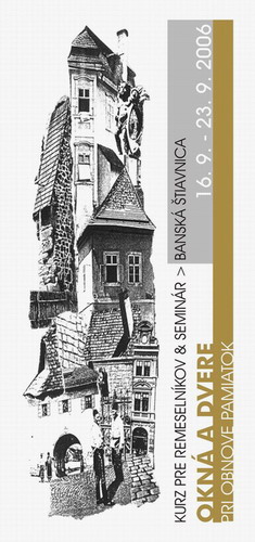 Spolok Banskej Štiavnice´91, spoločne s Fakultou architektúry STU, Slovenským banským múzeom a mestom Banská Štiavnica si Vás dovoľuje pozvať na medzinárodné podujatie – tréningový kurz a seminár Okná a dvere pri obnove pamiatok, ktorý sa bude konať od soboty 16. do soboty 23. septembra na vybraných miestach v Banskej Štiavnici.
