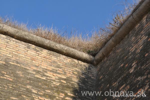Eskarpové múry musia, okrem tlaku zeminy, odolávať aj nepriateľským guliam.
