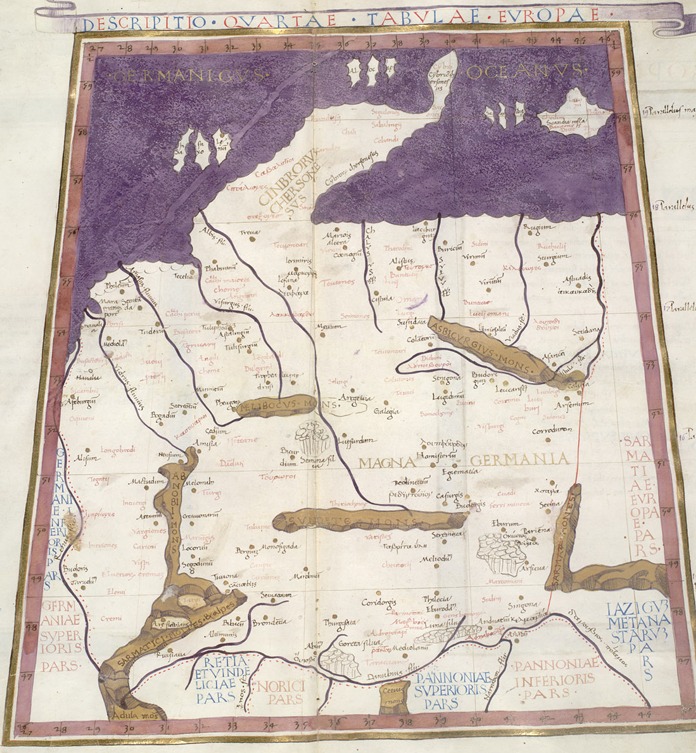 Nemeckí vedci stanovili na mape tri hlavné opevnené mestá: LUPPIA – Bernburg, AMISIA – Fritzlar a EBURODUNUM – Brno. Použitím geodetickej deformačnej analýzy pre Ptolemaiove súradnice a porovnaním so súčasnou mapou dešifrovali Ptolemaiove názvy pre mnoho ďalších nemeckých miest, kde ich odchýlka vzdialenosti obyčajne nepresahuje 10-20 km.