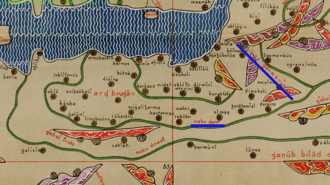 Stotožnenie pojmu germánsky ako nemecký vyvracia aj mapa TABULA ROGERIANA vypracovaná arabským geografom Muhammadom Al-Idrísím. Na mape sveta pracoval arabský kartograf na požiadanie sicílského kráľa Rogera II. celých 15 rokov. V roku 1154 boli práce na mape ukončené. Mapa TABULA ROGERIANA sa považuje za vrcholné dielo arabskej kartografie. Muhammad Al-Idrísí nachádza krajinu Germánov (bilád germánía) aj pri Čiernom mori, do ktorého vteká rieka Dunaj (nahr danú), kde nie som si istý, či Nemci niekedy sídlili…