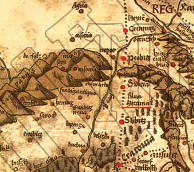 Obr. Detail Ptolemaiovej mapy na zakreslené územie Slovenska