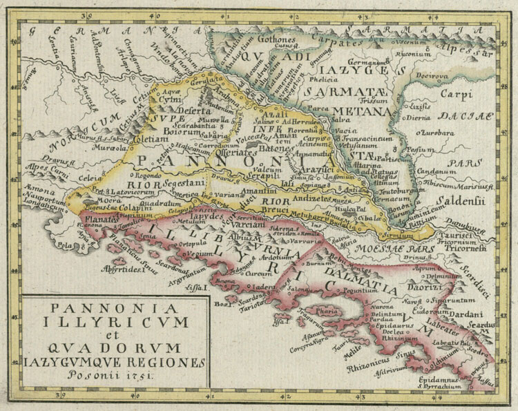 Obr. Dŕžava Kvádov podľa neznámeho kartografia na mape z roku 1751 vydanej v Bratislave