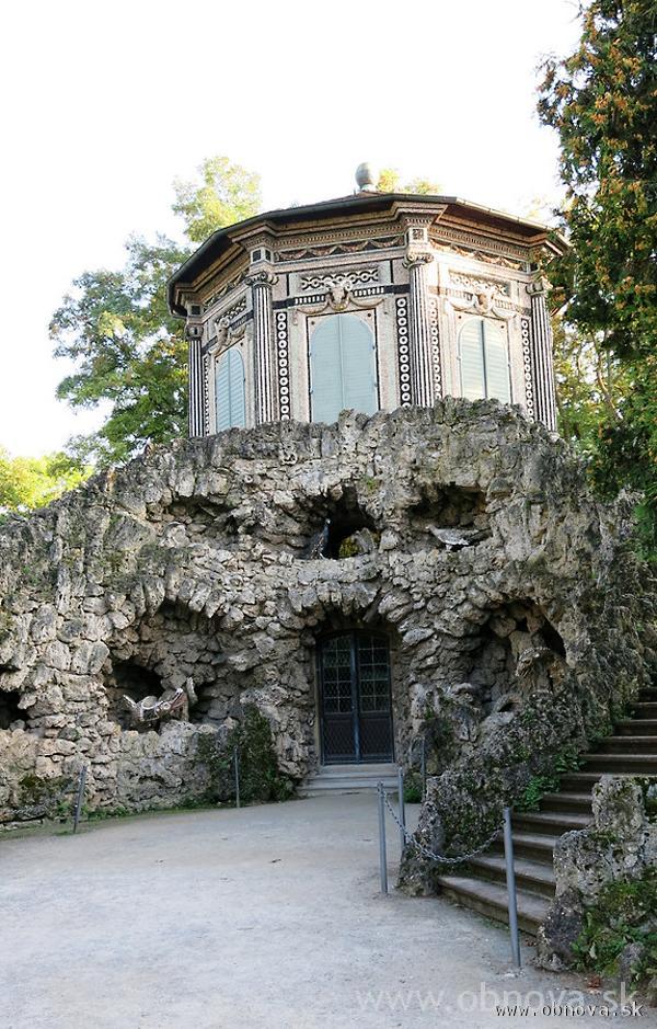 záhradná stavba, spravidla temná miestnosť, ktorá imituje vnútro jaskyne. Je umiestnená buď samostatne akebo na prízemí zámku, vily, pavilonu apod. Steny môžu byť obložené kvapľovým kameňom, do ktorého môžu byť vsadené morské a riečne mušle, úlomky skla a pod. Často doplnená fantaskným farebným štukom, plastikami alebo fontánami.