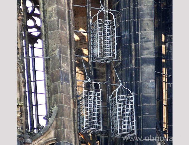 Tri klietky na veži chrámu Sv. Lamberta, Münster, Nemecko (Vestfálsko). V klietkach boli umiestnené telá troch vodcov baptistickej revolty v roku 1534, ktorých v roku 1536 popravili.