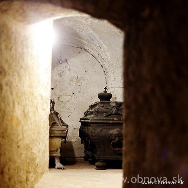 2) v starokresťanskej dobe, galéria hrobov v katakombách, neskôr obvykle podzemný klenutý priestor pod kostolom alebo kláštorom, kde boli pochované významné cirkevné a svetské osobnosti, resp. príslušníci mníšskeho rádu,