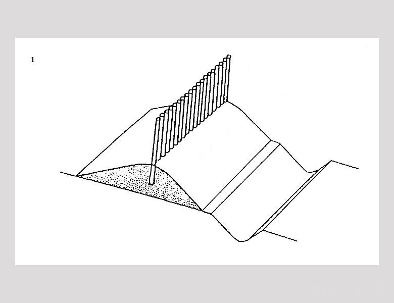 2. roštové valy – drevené konštrukcie vyplnené zeminou a kameňom,