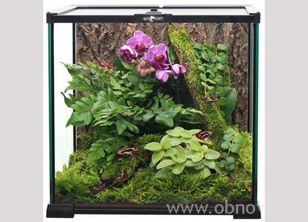 – tropické terárium, s husto vysadeným rastlinstvom, vysokou vlhkosťou a intenzívnym osvetlením. Substrátom je kôra alebo lignocel.