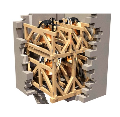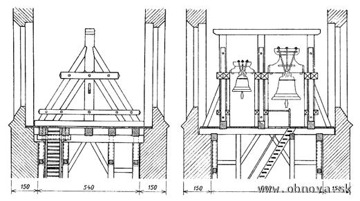 – zvony sa umiestňujú nad seba, pričom veľké zvony sú umiestnené dole a malé zvony hore.