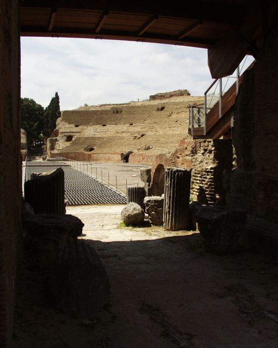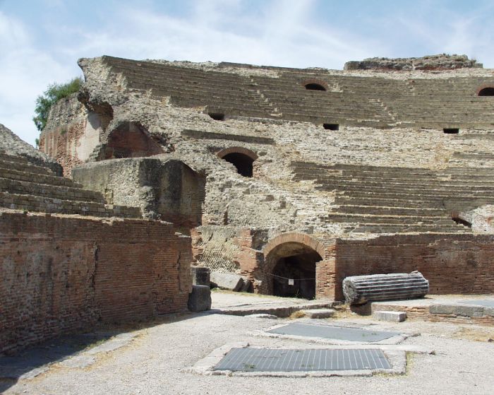 Na opa?nú stranu od parkoviska je jedno z dvoch hlavných lákadiel mesta: amfiteáter Amphitheatrum Flavium, pochádzajúci z 1.storo?ia. Je tretí najvä?ší v celom Taliansku, hne? po Koloseu a amfiteátri v meste Capua. Je neskuto?ne dobre zachovalý.