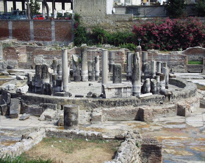 Chrám tak ako aj amfiteáter pochádza z 1.storo?ia, z obdobia vlády Flaviovcov. Dnes leží hlboko pod úrov?ou ulice. Ale to sná? nie je možné: tri hlavné st?py stavby sú kompletne obalené lešením! Na druhej strane, aspo? nie je v lešení celý chrám a tak aspo? ?o-to vidno. Celkom pekné malé kruhové st?poradie v strede vyvažuje sklamanie.