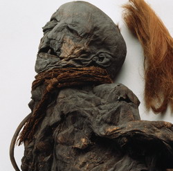 Okrem predmetov prinášali dávnovekí obyvatelia severu bohom aj ?udské obete. Kyslá voda rašelinísk konzervuje všetko, ?o pohltí. M?tvoly v nich nájdené patria k najvzrušujúcejším nálezom. Výstava približuje históriu siedmich m?tvol. Napríklad z Holandska pochádza múmia diev?a?a z Yde, nájdená náhodou, pri ?ažbe rašeliny v roku 1897.