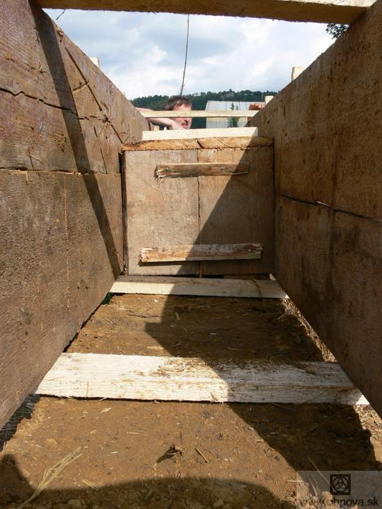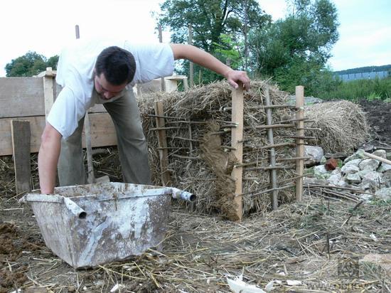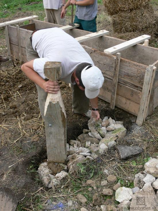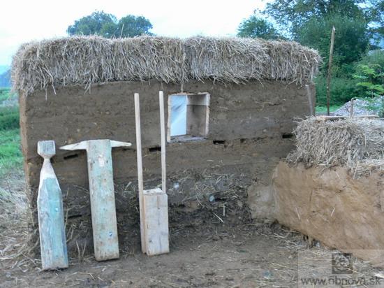 Boris pri dusanej stene pripravoval zaklady pre slamenne baliky.