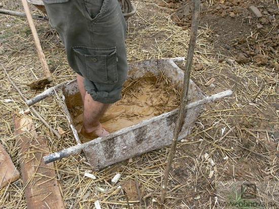 Slamenne baliky sme omazavali hlinenou omietkou. Ktoru bolo treba najskor rozmiesat…