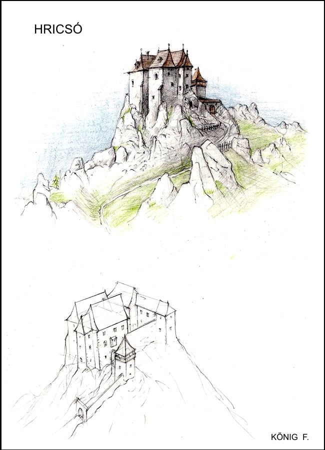Ideová rekonštrukcia hradu ( zdroj : http://www.varak.hu/ ) Do horného hradu sa vstupovalo bránou vysekanou do skaly, z ktorej vysekali aj lavice pre stráže. S veľkou námahou vystavané obytné budovy vytvorili jednoliaty celok so skalným masívom. Zo súvislej hmoty horného hradu vystupovala iba veža pred vstupom a na západnej strane časť paláca. V polovici 16. storočia, keď po moháčskej bitke oslabila štátna moc, hrad prechodne vlastnili aj lúpežní rytieri. Ku koncu 17. storočia je už Hričov na svoju dobu málo pohodlný, a preto opustený začína sa čas jeho rozpadu. Text o hrade je z knihy : Hrady na Slovensku od autorov : Hilda Fialová a Andrej Fiala 1966Na západ od Žiliny, na severnom okraji Strážovskej vrchoviny ležia ruiny Hričovského hradu.Podľa historických správ tu jestvovalo opevnenie už od 13. storočia.V nasledujúcom storočí patrí hrad kráľovi, potom jednotlivým feudálom, medzi ktorými nachádzame aj bratov Podmanickovcov, Jána Zápoľského a Juraja Thurzu.Hradný vrch tvorí strmý a neobyčajne členitý skalný chrbát, ktorý poskytol iba malé priestory pre rozvoj samého hradu. Ten bol koncom 15. storočia z veľkej časti prestavaný.