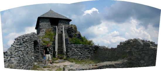 Z hlavnej hradnej veže, zrejme pôvodne obytnej je kruhový výhľad do okolia.
