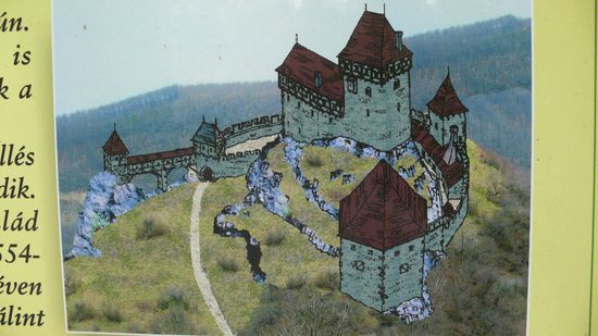Tesne pod hradom bola informačná tabuľa, v maďarčine.