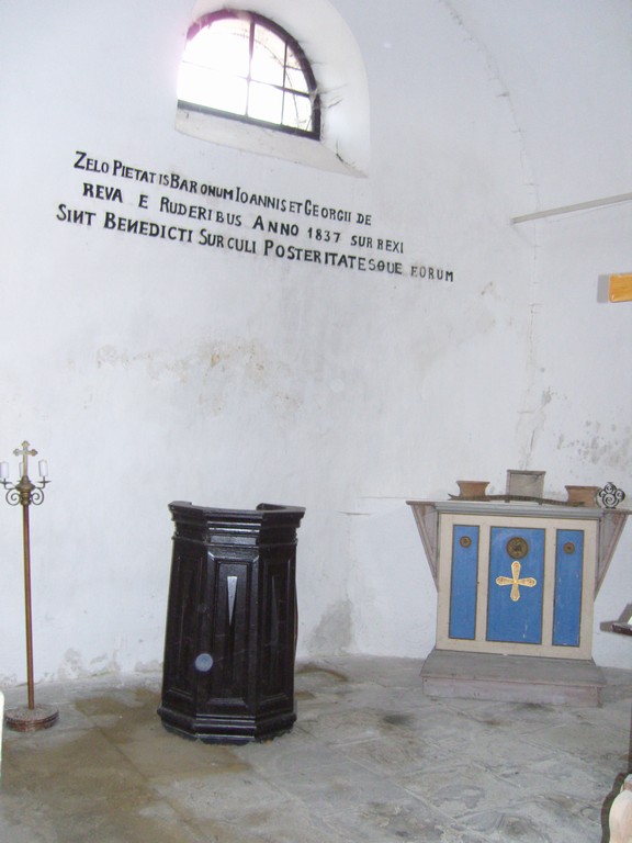 „Zelo pietatis baronum Ioannis et Georgii de / Reva e ruderibus anno 1837 surrexi. / Sint benedicti surculi posteritatesque eorum!“Preklad (doslovný):