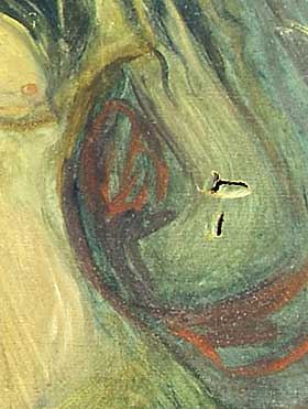 Podle posledních informací byli norští restaurátoři se svou prací rychlejší, než mnozí očekávali. Dostala se mi do rukou fotografie, zachycující stav v průběhu restaurátorského zákroku na obraze „Výkřik“. Zda zvolili vhodnou metodiku, posuďte již sami…: :D :lol: :)