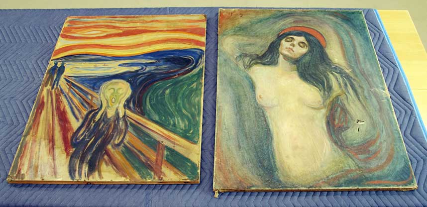 Obrazy budu vystavene v muzeu znova az na konci jesene po zrestaurovani vsetkych poskodeni. Obraz „Vykrik“ ma okrem ineho aj problematicku vlhku skvrnu na lavej strane platna…