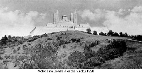 Najprv si však pripomeňme, že 11. mája 1919 boli na návrh Dušana Jurkoviča na Bradle pochovaní generál M. R. Štefánik a traja talianski letci Giotto Mancinelli, Umberto Merlini, Gabriele Aggiusti. Nad ich spoločným hrobom bola navŕšená mohyla z kameňa a v nej zapustený pomník – kamenný kresťanský kríž. Potom na žiadosť pozostalej rodiny exhumovali poručíka Mancinelliho (25. februára 1921) a previezli ho do Talianska. Architekt Jurkovič, ktorý už mal pripravenú prvú verziu mohyly so štyrmi obeliskami (obeťami), nebol touto skutočnosťou vôbec nadšený.