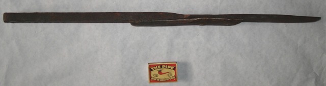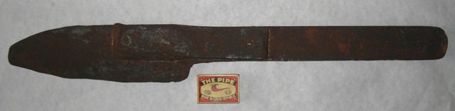 Obraciam sa na vás s týmito otázkami, lebo fakt neviem čo to je. Predmet sa podobá veľkému príborovému nožu. Celková dľžka je 56,5 cm, šírka rúčky je 4 cm, hrúbka rúčky je cca 13 mm, čepeľ je dlhá 23 cm, široká 7 cm, váha cca 2,5 kg. V mieste prechodu čepele do „rúčky“ je prasklina. Majiteľ si dal tú námahu a dal nástroj opraviť – na bok bola pridaná pásovina a s nástrojom bola znitovaná pomocou štyroch nitov. Na „rúčke“ je vyrazené : MACKO.G a pod tým N (zrkadlovo) = RI S(zrkad.) Z(zrkad.) TEREC (možno G) . Kedy to vezmem do rúk, vtedy kukám ako 8O , no neviem si rady.